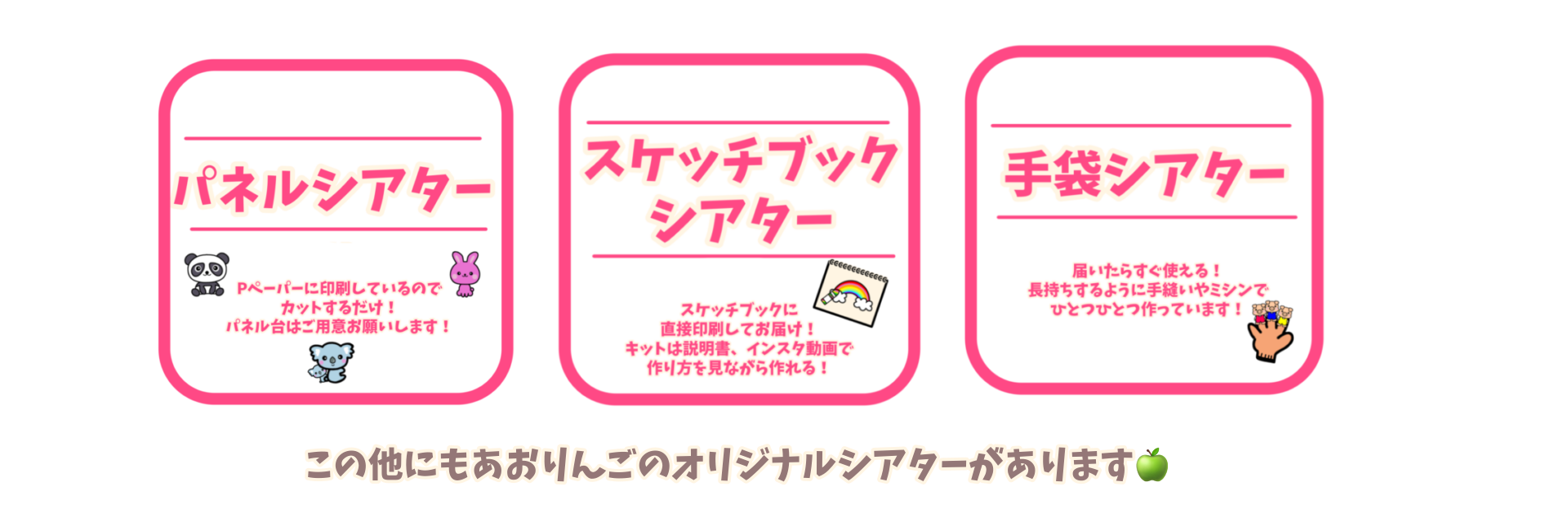 【2way ぱんだうさぎこあら パネルシアター】 ★台本付きです。 ★誕生会、入園式や進級式、日常でも使えます! ★カット済み・サイズアップ・ラミネート加工をご希望の場合は 「オプション」をご利用ください。 ①『パンダうさぎコアラ』 手遊び歌に合わせてイラストを出しながら 楽しみます♪ ②『誕生会 内容』 「かくれんぼしてるの誰かな?」と、 木の後ろから、動物を出します。 「パンダさんだね、あれ?まだ何か隠れているよ」 プレゼントを木の後ろから出して… 「プレゼントが隠れていたね、中身は何かな?」 プレゼントからは動物たちの好きな食べ物が出てきます! (プレゼントはポケット状にはなっていません) 最後にプレゼントの中からケーキが出てきて お誕生日おめでとう!と お誕生会にも演じられます(◍•ᴗ•◍) 『オプション詳細』 ・ライオンとお肉ををおつけします! ※家庭用プリンターでの印刷です。またハンドメイド品ですので ご理解の上、ご購入お願いいたします。 ※複数ご購入頂いた場合は、ひとつにおまとめして 発送することがありますのでご了承ください。 #あおりんごパネルシアター