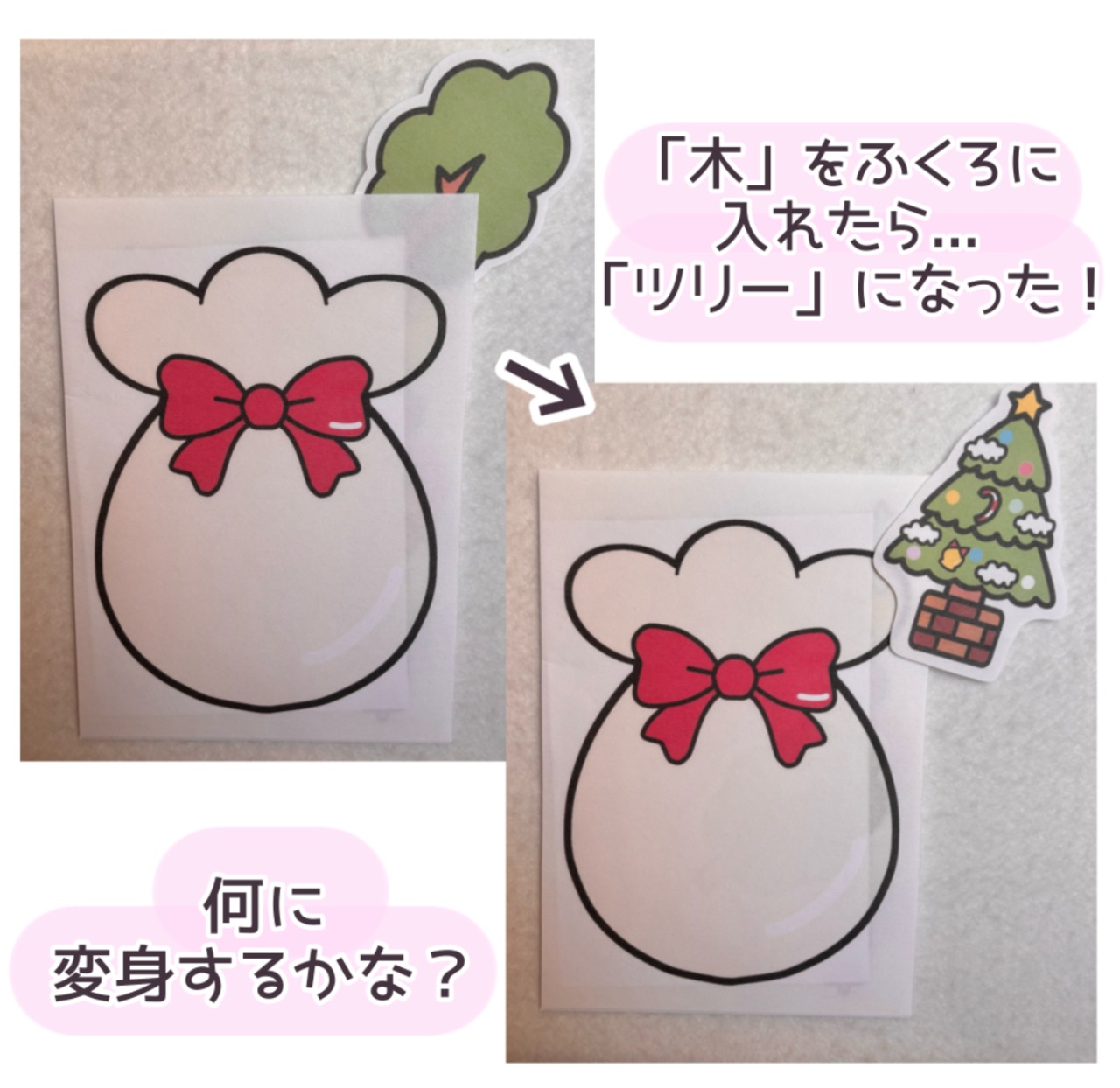 まほうの袋に「木」を入れると「ツリー」になった!