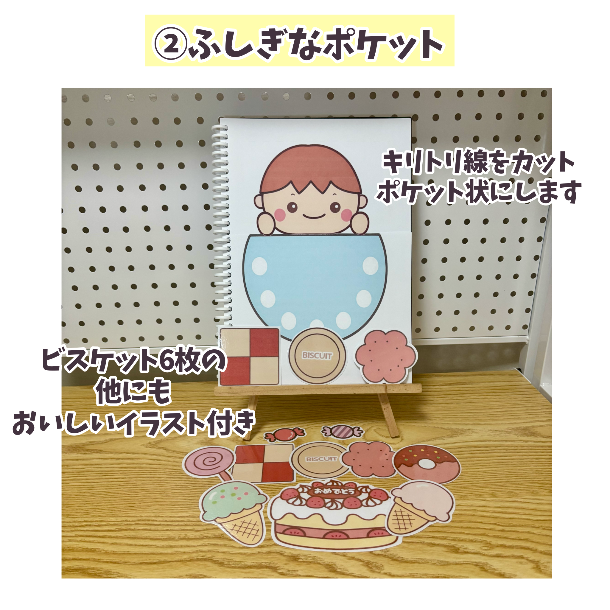 (ビスケット6こ・ドーナツ・アイスクリーム2こ・ケーキ・あめ2こ・ペロペロキャンディー)