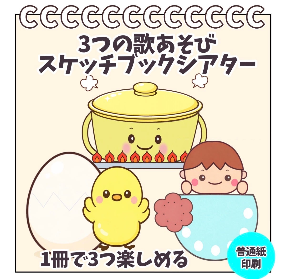【通紙印刷お届】 3つの歌あそび スケッチブックシアター まあるいたまご ふしぎなポケット カレーライスのうた