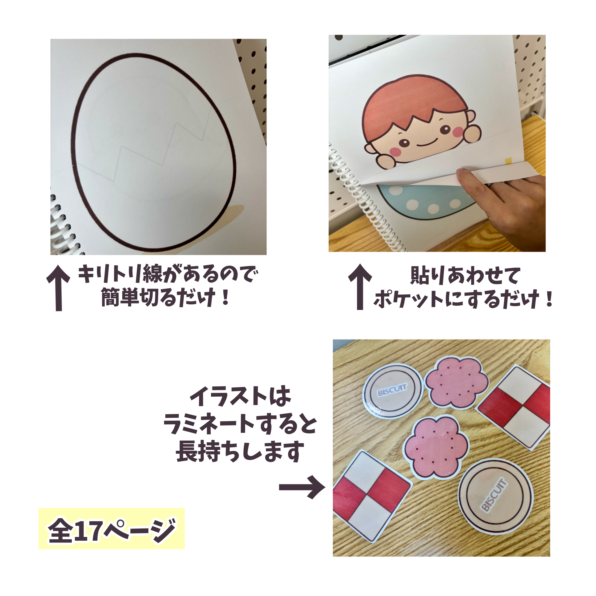 クッキーなどのパーツはラミネートをかけると丈夫になります!