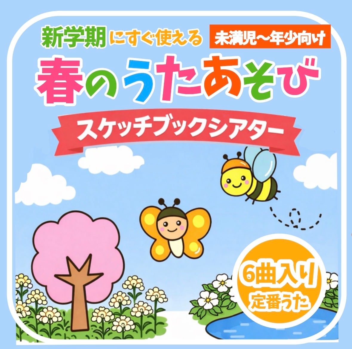スケッチブック印刷お届け 【保育ですぐ使える】春のうたあそび スケッチブックシアター 6曲入り A4 13ページ 未満児 年少 保育士 保育 保育教材 誕生会 歌