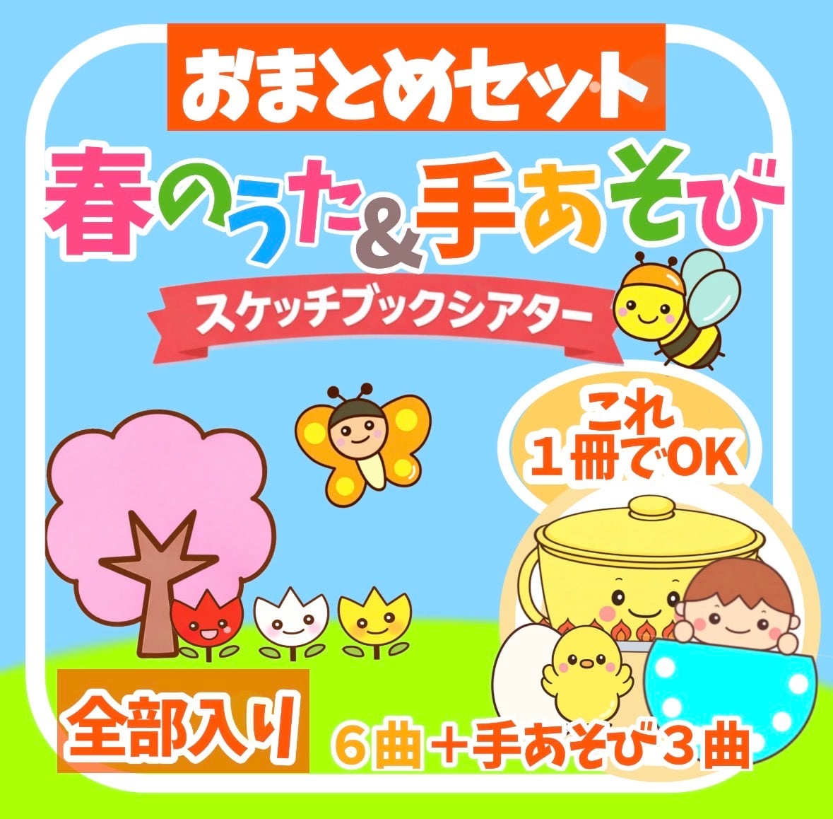 2セットまとめ【ほぼ完成品】春のうた&手あそび スケッチブックシアター おまとめ 9曲 未満児 年少 すぐ使える 保育