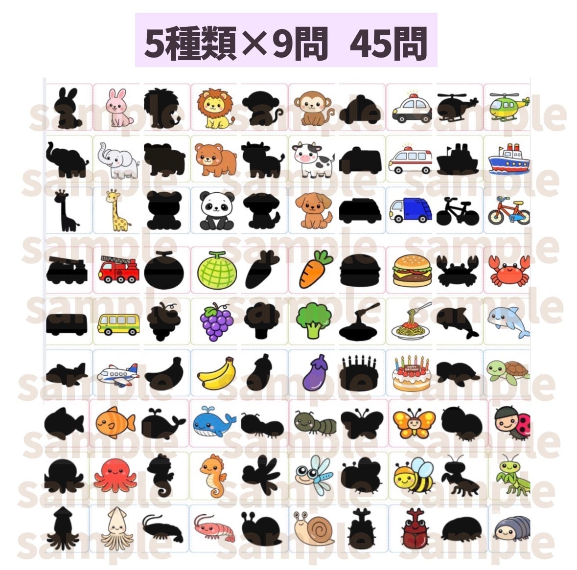 【ダウンロード】シルエットクイズ 全45問 動物 食べ物 乗り物 海の生き物 虫