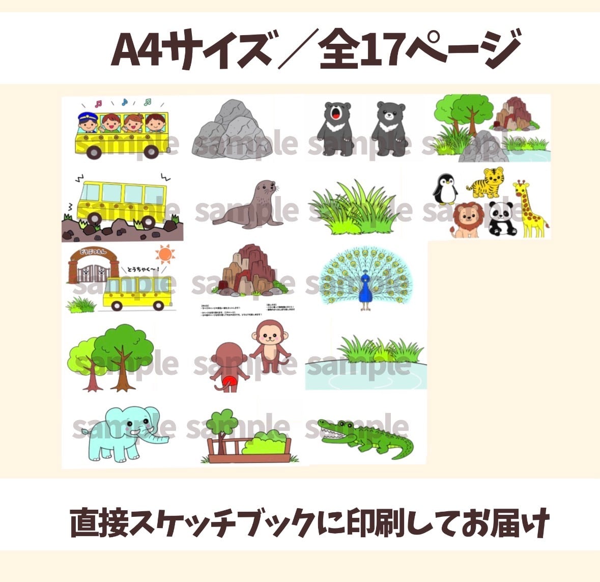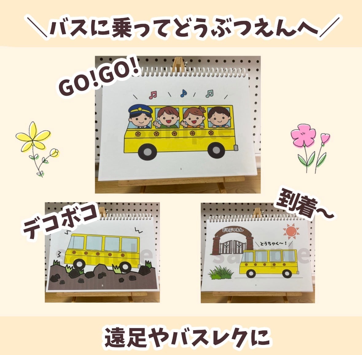 【ほぼ完成品】 どうぶつかくれんぼ バスに乗って動物園に行こう スケッチブックシアター 遠足 バスレク 保育教材 出し物 保育 保育士 幼稚園 えんそく 5月
