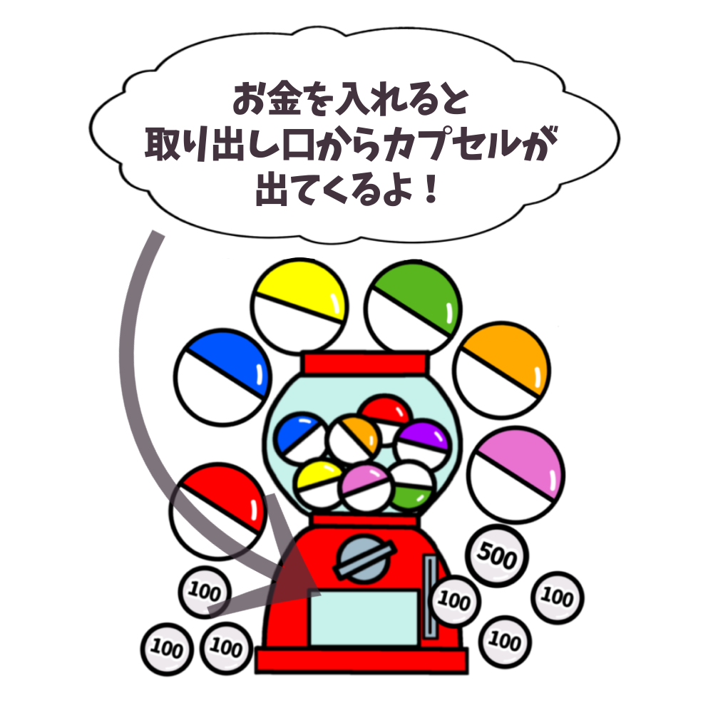 (虹色カプセルは大きいので取り出し口からは出ません)