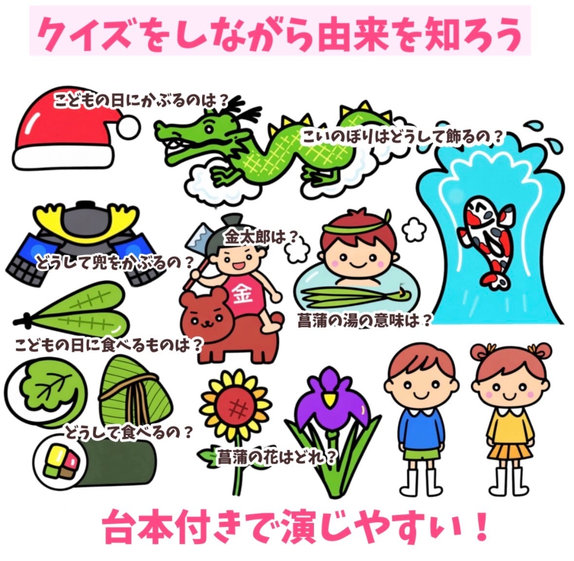 ・こどもの日にお風呂に入れるものは?→菖蒲の葉っぱ(意味が台本に入ります)